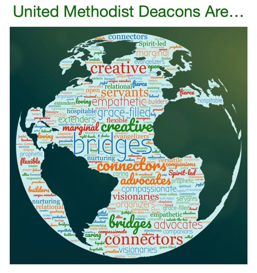 A graphic for describing deacons, created by UM Deacons: Sarah Dierker, Sara L Martin, Barbara Dunlap, and Kris Wise
